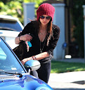 Más unas fotografías de Nina yendo a entrenar.. Siempre fiel a sus gorros.. =D