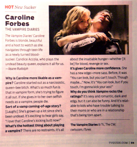 TV Guide ha publicado su lista caliente para el año 2010 y Caroline Forbes, interpretado por nuestro propio Candice Accola, fue catalogada como "Hot New Sucker! Siga leyendo para ver lo Candice tiene que decir acerca de la transformación de Caroline...